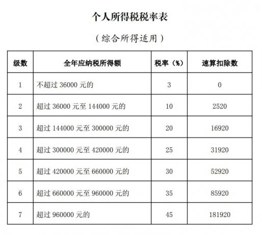 1.本表所称全年应纳税所得额是指依照本法第六条的规定,居民个人取得综合所得以每一纳税年度收入额减除费用六万元以及专项扣除、专项附加扣除和依法确定的其他扣除后的余额;