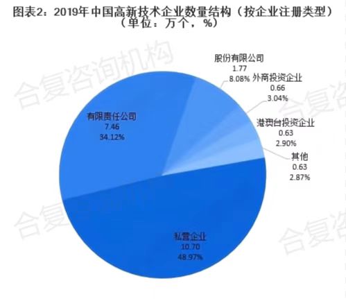 目前,私营企业、民营企业已成为我国高新技术企业发展的重要主体。2019年,从企业注册类型来看,我国高新技术企业数量中,私营企业数量达10.7万个,占高新技术企业总量的48.97%;其次是有限责任公司,数量达7.46万个,占比约34.12%。