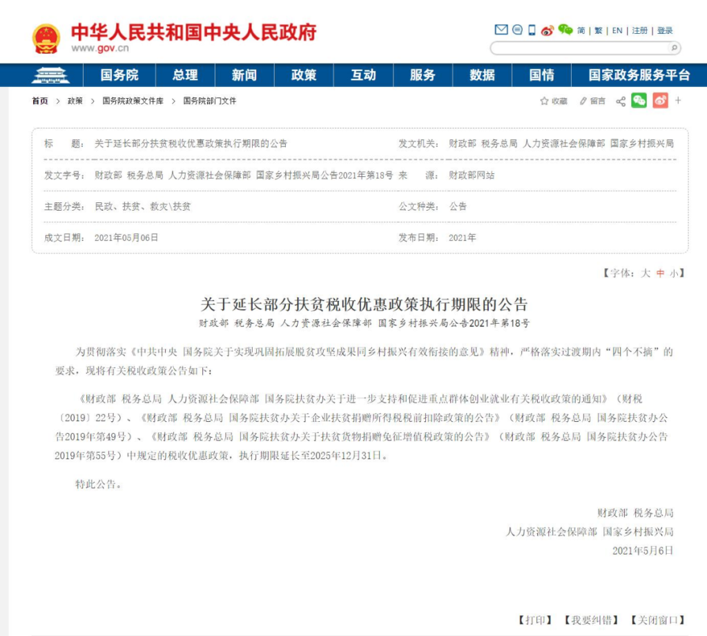 2)关于延长部分扶贫税收优惠政策执行期限的公告