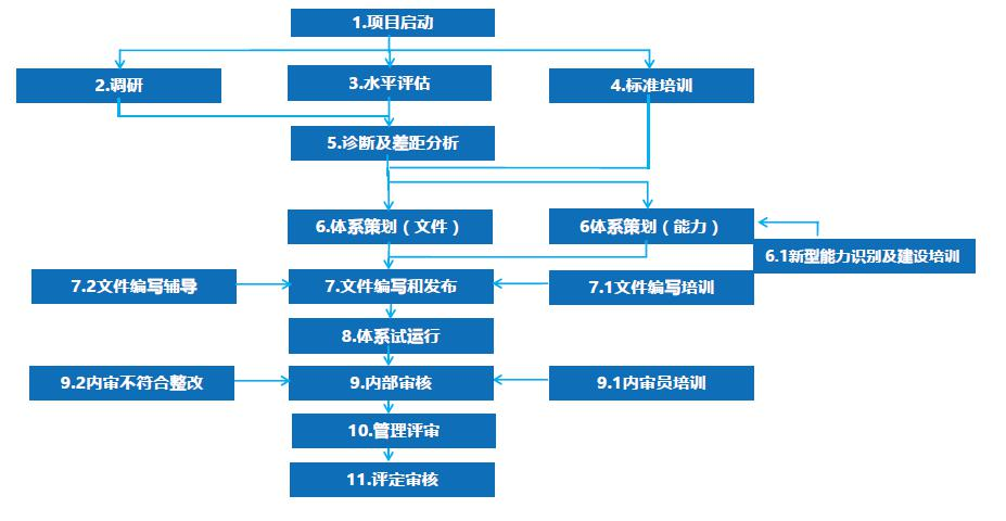 | 4 | 内审、管评 | 项目人员撰写后续评定材料,需要企业配合进行签字 | 2周 | |